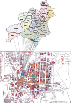 Stadtgarten: Künstlernetzwerk netzhalde, Freising Während der Festwoche verwandelt sich die brache Kiesfläche der Baulücke am Wallhof in einen blühenden Stadtgarten: Zusammengetragen von den Bürgern der 34 Stadtteile Neustadts, von Amedorf bis Wulfelade, entsteht aus Topfpflanzen der einzelnen Stadtteile das Bild einer Stadt, die weit über die Mauern ihrer ehemaligen Befestigung hinausgewachsen ist. Die Topfpflanzen werden auf quadratischen, temporär installierten Podesten arrangiert, die in ihrer Größe dem Flächenanteil des jeweiligen Stadtteils entsprechen. Die Anordnung der Stadtteil-Podeste in der Baulücke folgt nicht den geografischen Gegebenheiten und erzeugt so neue Nachbarschaften. In einem öffentlichen Aufruf wird die Bürgerschaft Neustadts gebeten, zu ihrem Teil des "Stadtgartens" beizutragen und das Stadtteil-Podest mit Topfpflanzen und Balkonkästen aus dem privaten Garten zu gestalten. |
