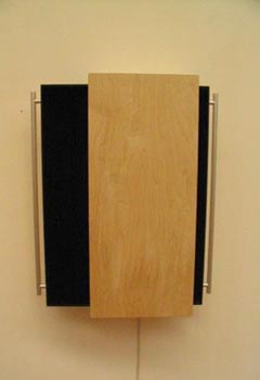 Wandschrein - beim Öffnen des linken wie auch des rechten Flügels entstehen Klangbilder aus schwarzen Fächern. (2004) |